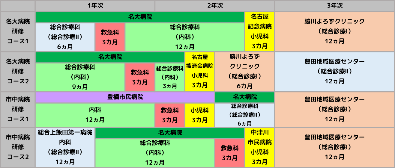 【1年次】研修先によって異なります名古屋大学医学部附属病院の場合